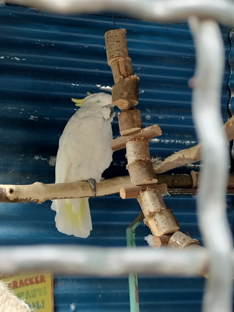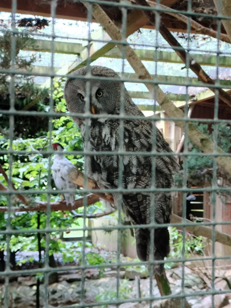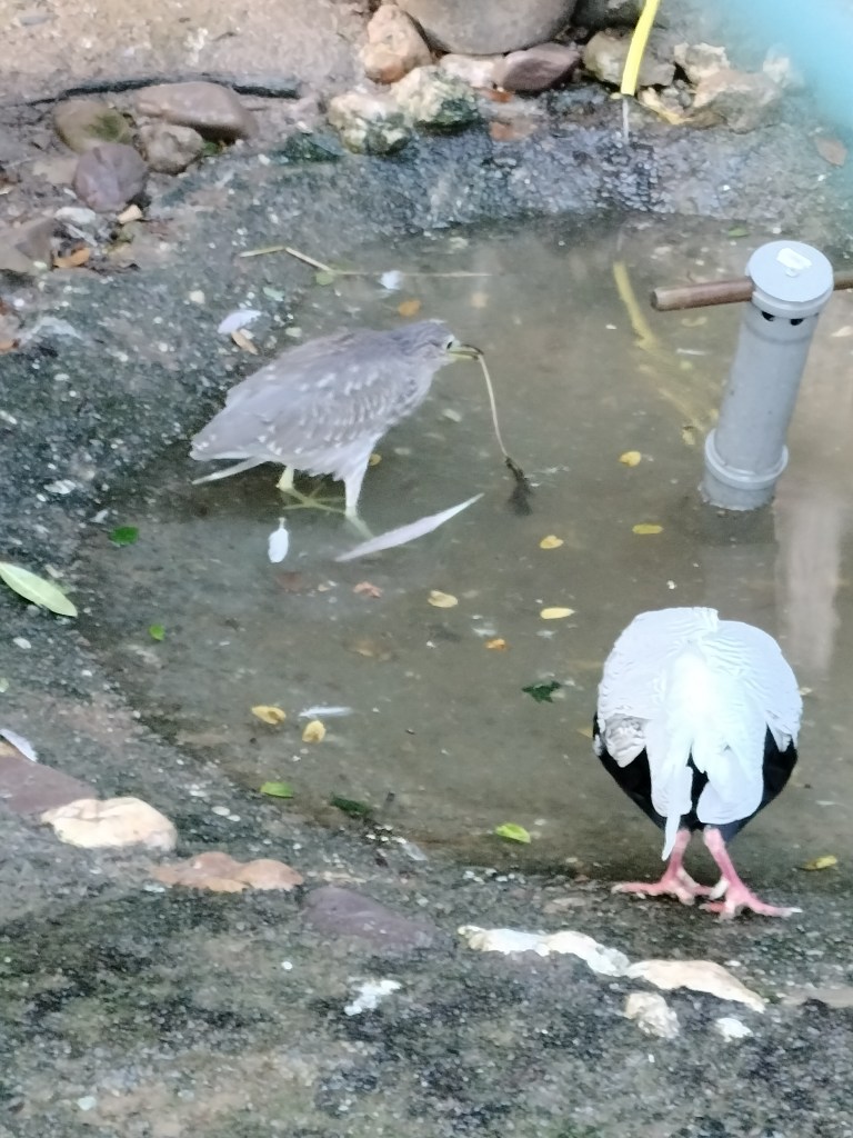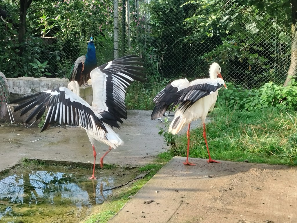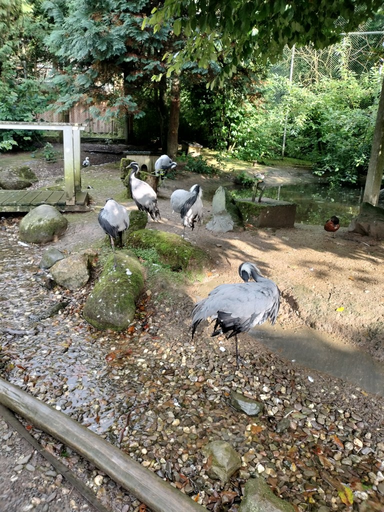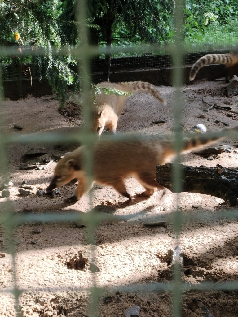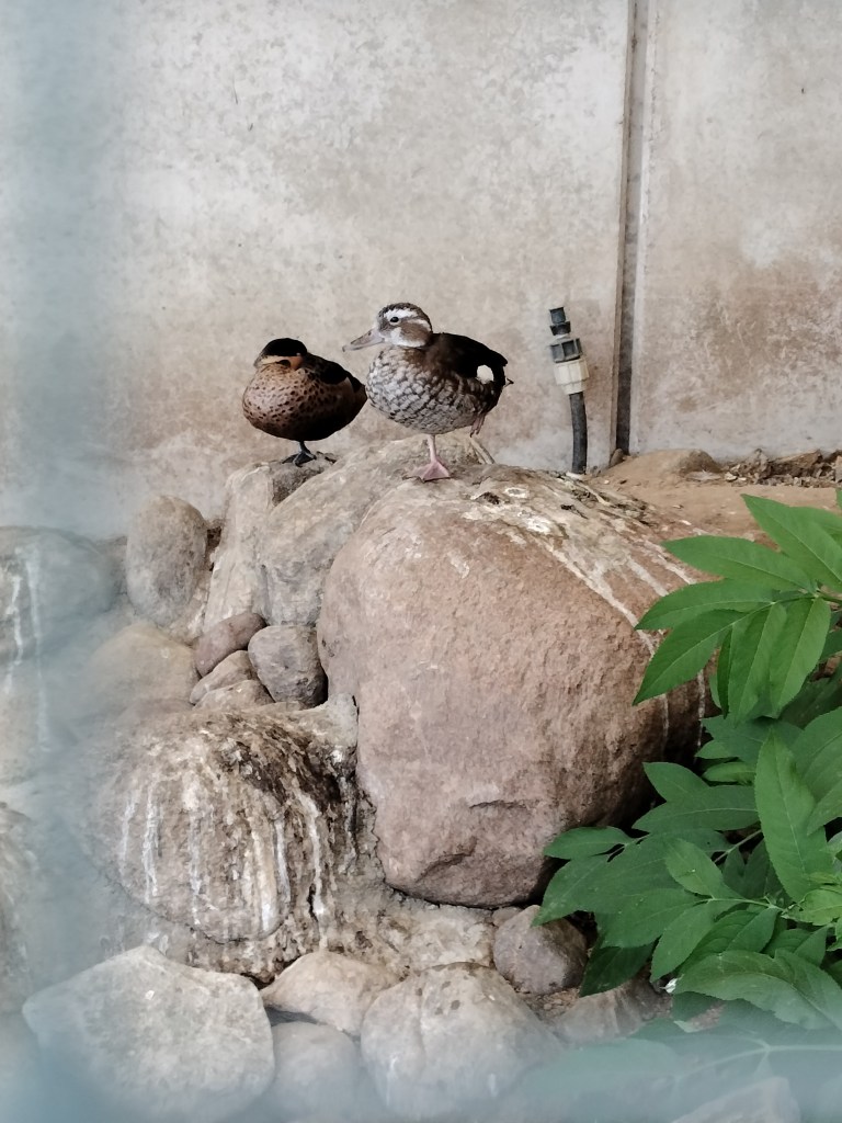 After a few hours, the rain had finally slowed to a light drizzle and we thought it would stop. We had only just gotten down the first small path when the rain got heavy again, but we could see the nice blue sky coming in so we just sought shelter under a small roof of one of the bird enclosures. Ten minutes later, we had a nice blue sky again and sun. And it stayed sunny the rest of the day as the checked out the third (and last) part of the park! ☀️ More birds to explore as well as some other animals.