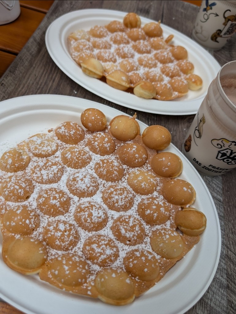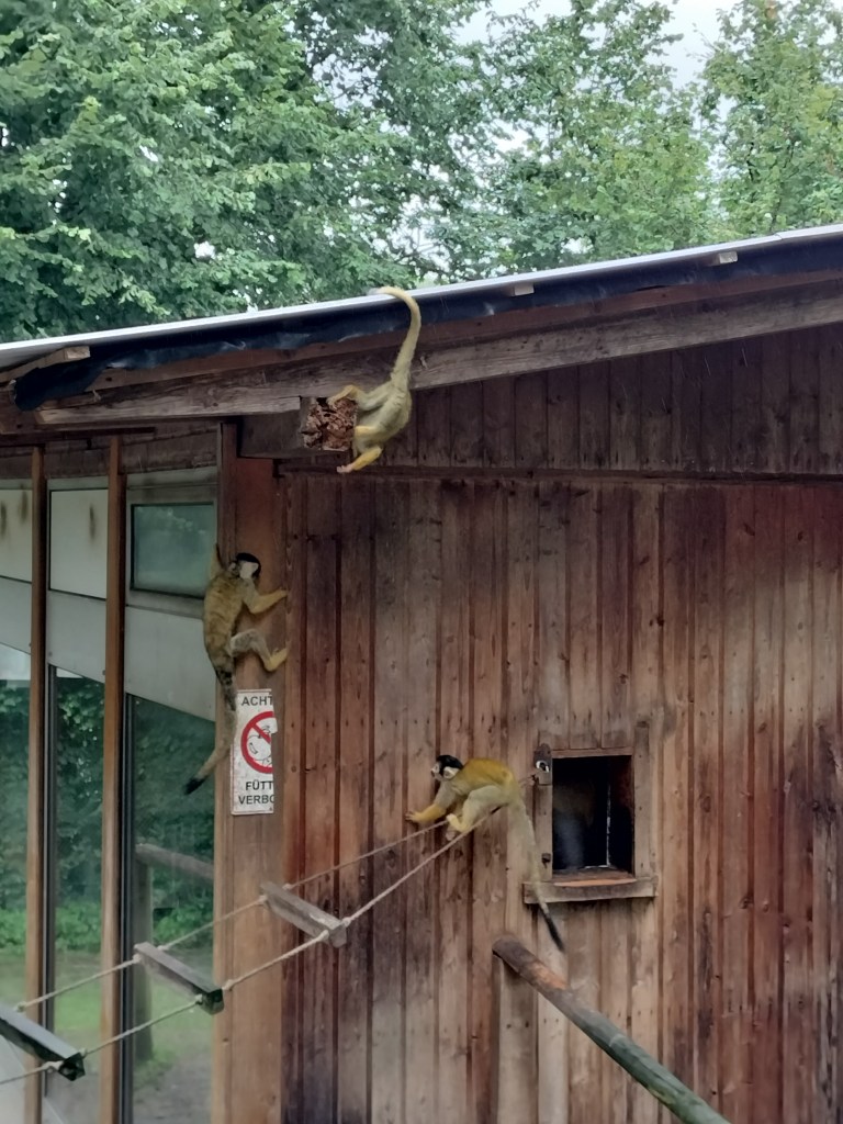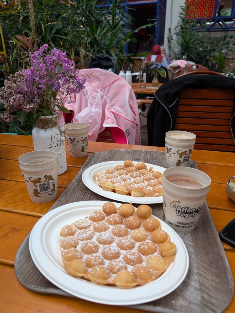 The next day, we went to the Monkey and Bird Park (Affen- und Vogelpark) with family which was another adventure baby bunny just absolutely loved! As the name says, they have monkeys and lots of birds to see! But they also have other animals, as well as some beautiful gardens. And it’s definitely geared towards kids as there were also multiple playgrounds outside and a huge play area inside – right by their café so parents can easily grab a coffee or a waffle while the kids play. Yes, that’s what we did 😂