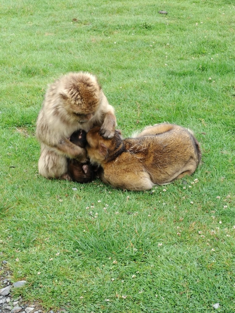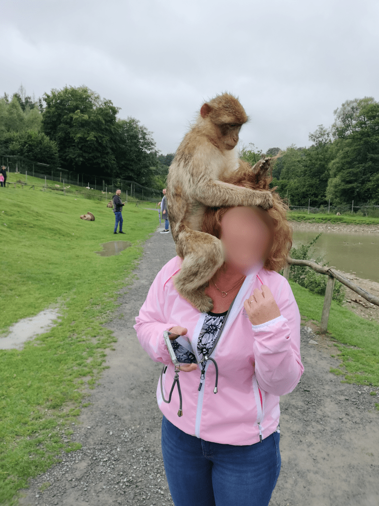 Also again we were not allowed to touch the monkeys, however they were allowed to touch us and sure enough… one jumped up on my mom’s shoulder 😂 She set herself up for that though! Cause that monkey was sitting on someone else’s shoulder first, and the guy couldn’t leave cause you can’t touch the monkeys to get them off you, so my mom had jokingly asked if the guy lived there too now. Then we walked away and not ten seconds later, that same monkey was climbing up onto my mom’s shoulder 🤣🤣