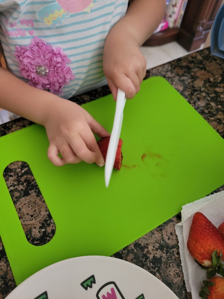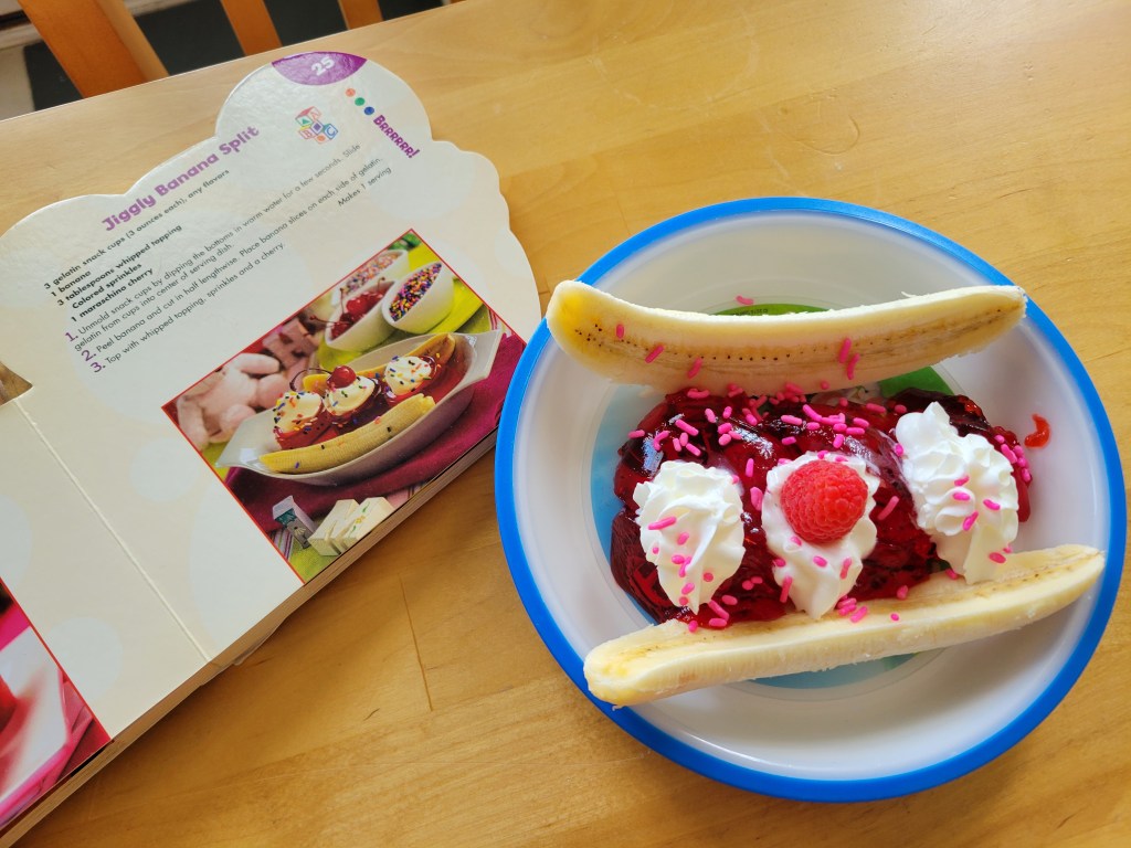 On top of regular school work, I also try to teach baby bunny lots of real life skills. Cooking is always at the top of the list, so I try to have her help me in the kitchen whenever I can. And she has a little cookbook that we recently tried to make a dessert from. Yummy 😋