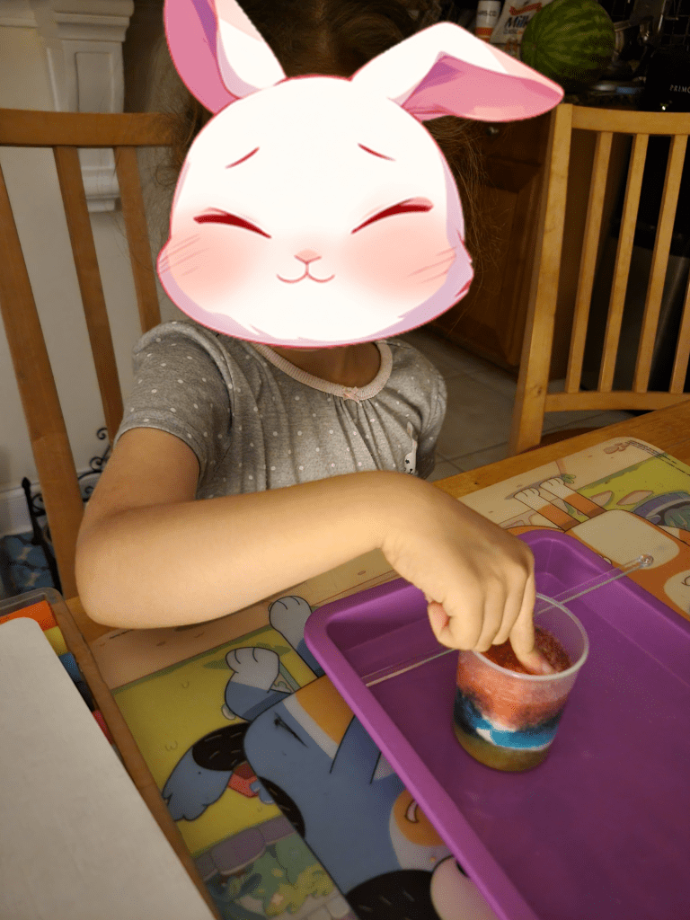 We slowly got back into our normal routine, especially with baby bunny’s homeschooling 📚 Early morning science experiments are her favorite 🧪 Here is the magic snow we were making – she loved it. And we have multiple workbooks I work through with her, this is just one of them 📒